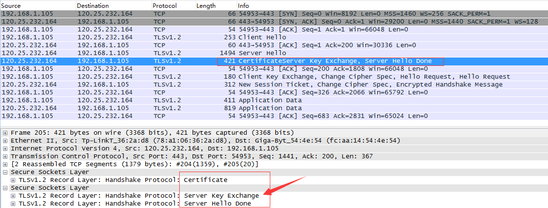 相比RSA算法而言,握手過程多了一個server key exchange步驟